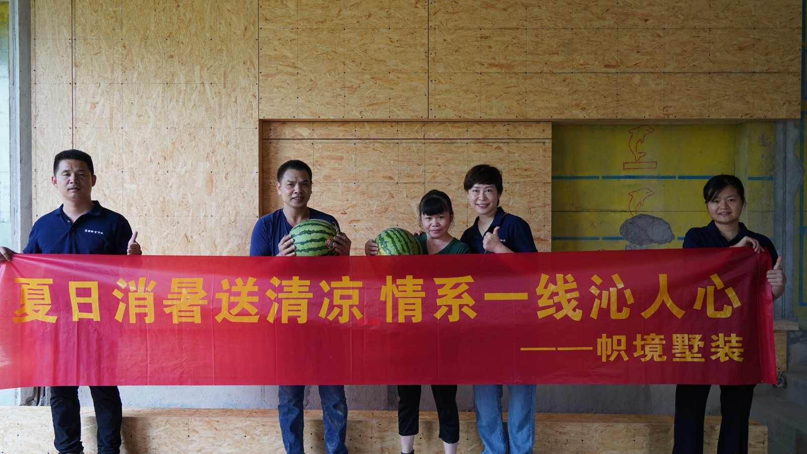 为关心与关爱身处一线的工匠师傅身体健康,切实做好高温天气在建项目工地防暑工作,促进各个在建项目工地施工进度顺利推进,确保高质量如期交付房屋,8月3日,帜境墅装开展“夏日消暑送清凉,情系一线沁人心”的工地慰问活动,由公司管理层带队前往帜境墅装各在建项目工地,为工匠师傅送上清凉解暑的西瓜。